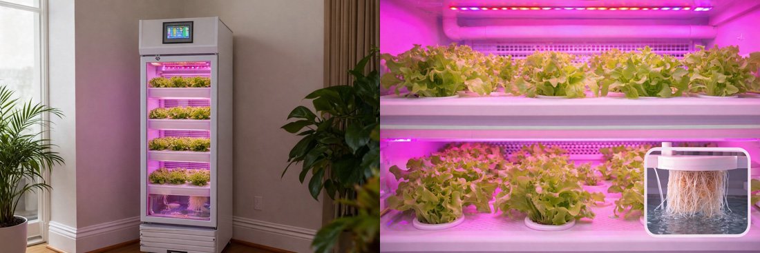 With integrated lighting, humidification, and nutrient supply, it creates a controlled growing environment that supports year-round cultivation and continuous harvesting, without being affected by seasons.